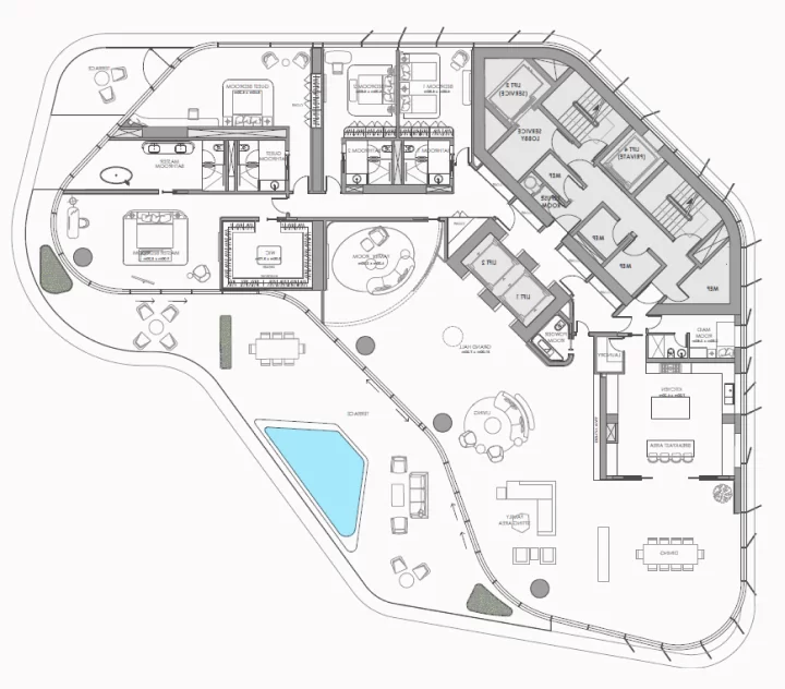 All amenities within the residential building are provided by the Dorchester Collection. Residents living in Ava at Palm Jumeirah will have the opportunity to visit the private cinema that welcomes up to 12 guests. Residents will also be provided with 24/7 concierge services and a valet service. Doorman and porter facilities, as well as the maintenance of common areas, and à la carte services are all managed by Dorchester Collection, as well as cleaning, a separate services entrance, and other options will also be available to residents.