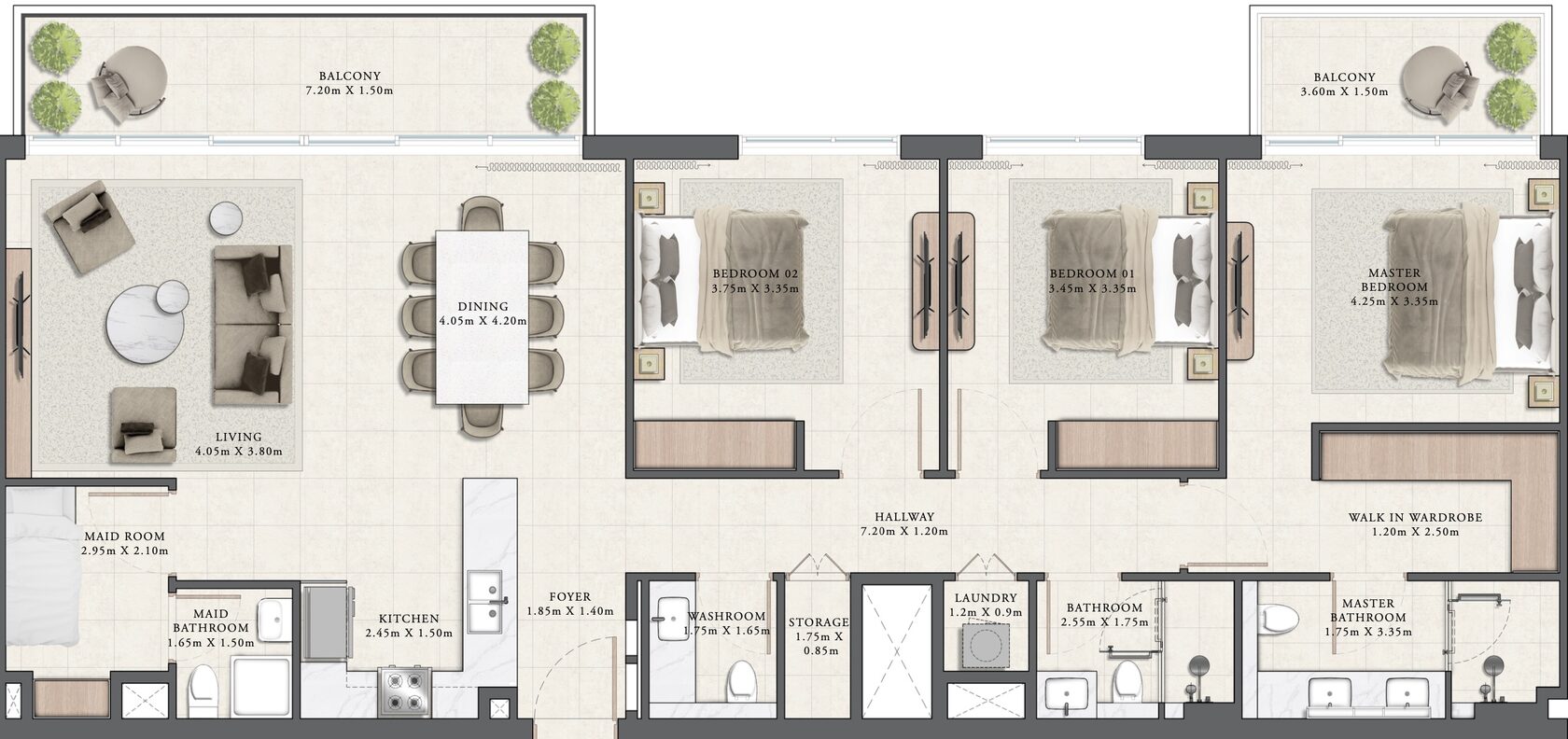 The project is planned to be completed in Q1 2027. If you decide to rent your property, you can guarantee a generous income. Thus, the current ROI for a 1-bedroom apartment in Dubai Hills Estate is 7.4%, while the ROI for a 3-bedroom townhouse is 7.1%.
