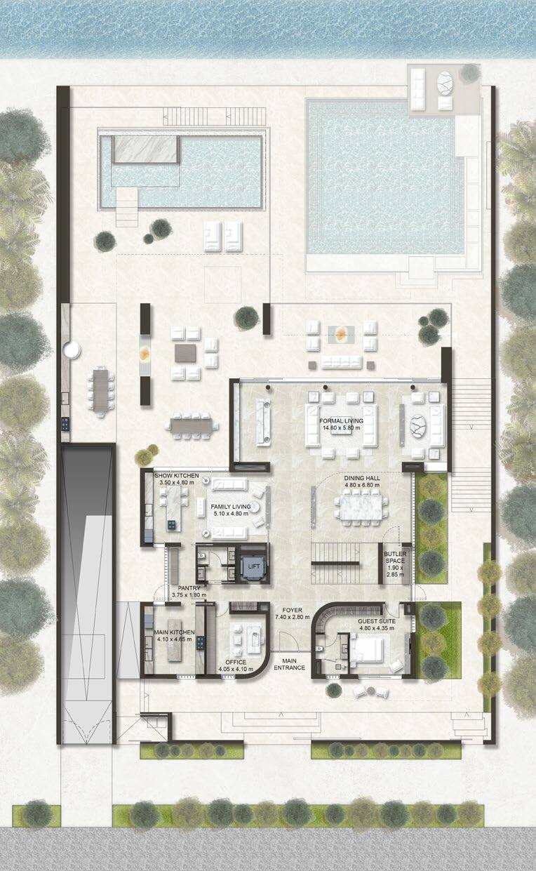 Stunning waterfront views overlooking the pristine Lagoon Al Ghaf grace each mansion, with a select few offering exclusive, direct lagoon and beach access. The undulating landscape of Elysian Mansions leads to a pristine, 120 meter private beach accessible only to mansion owners.